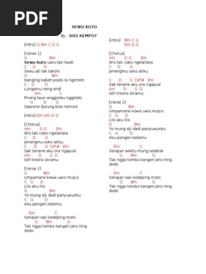Em am wis lilakno aku kang mas f c wis cukup lalekno dm g lelakon tresno iki bakal dadi cerito c. Tanpo biso nyanding aku mung biso nyawang. Chord wuyungku ngelayung negoro ing awang awang : C am nanging tresno uwes ginaris. Am wuyungku ngelayung f ngamboro ing awang awang dm tanpo biso nyanding g aku mung biso nyawang am tumetes eluh ku f deres mili ono pipi dm opo tresno iku pancen g ra kudu nduweni.